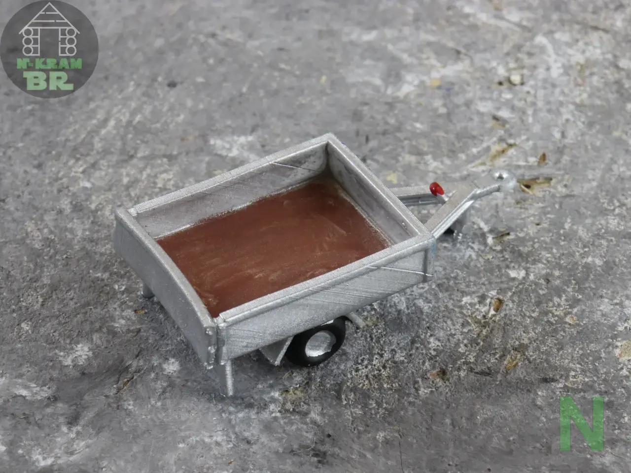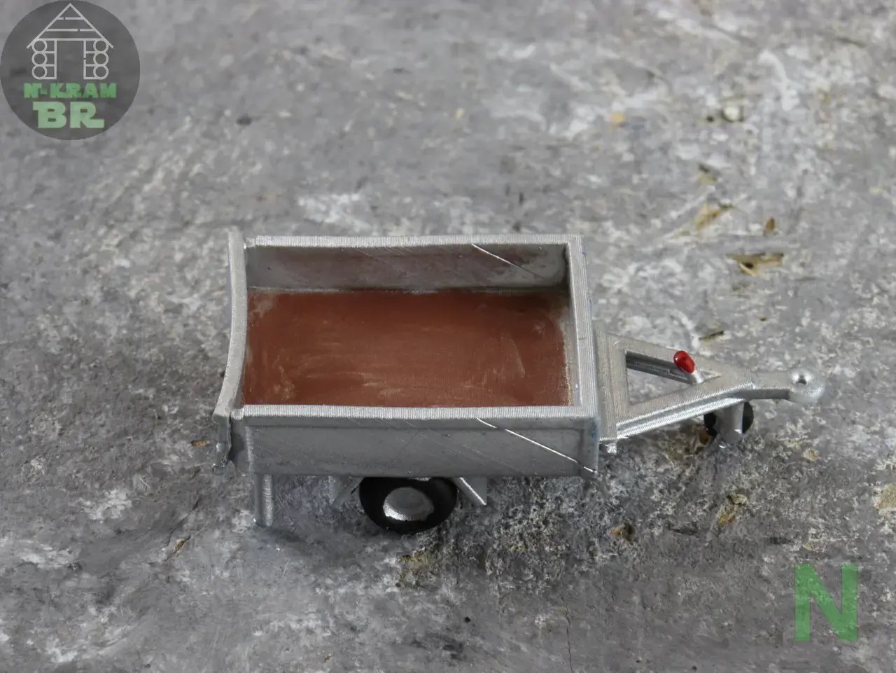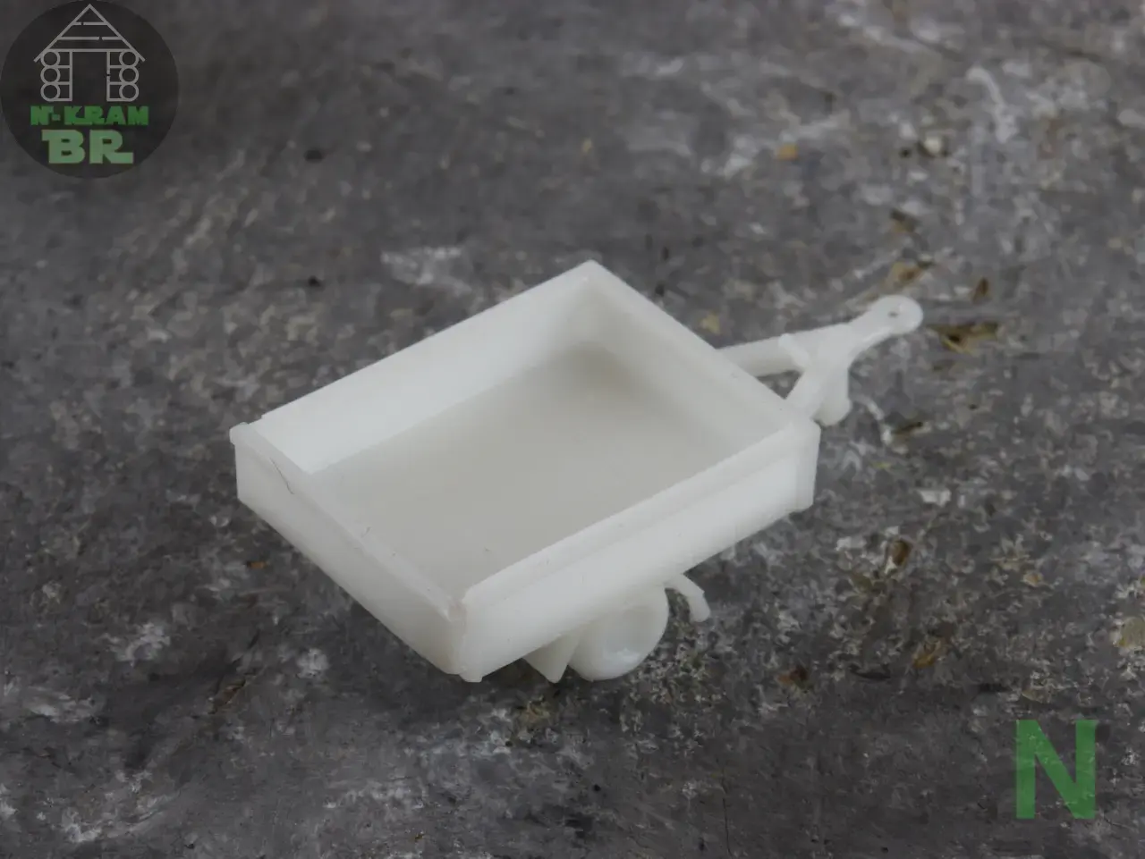 Einen Anhänger kann man immer brauchen. Dieser hier ist oben offen, damit man die Ladung gut sehen kann. Dafür eignet sich Holz, oder alles was sonst noch zu transportieren ist. Zwei Standbeine hinten und ein Bugrad sorgen für stabilität. Mit der beiliegenden Heckklappe kann der Anhänger geschlossen oder geöffnet dargestellt werden, drum ist sie auch nicht fest angedruckt. Mit einem Stückchen Papiertaschentuch oder Serviette kann eine Plane gebastelt werden. Einfach zuschneiden und mit verdünntem Leim tränken. Dann wird das Stückchen drüberdrapiert und man lässt es trocknen, fertig ist eine tolle Plane. Das funktioniert auch über einer Ladung.
