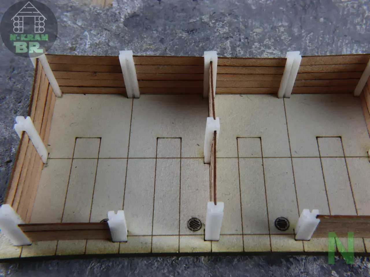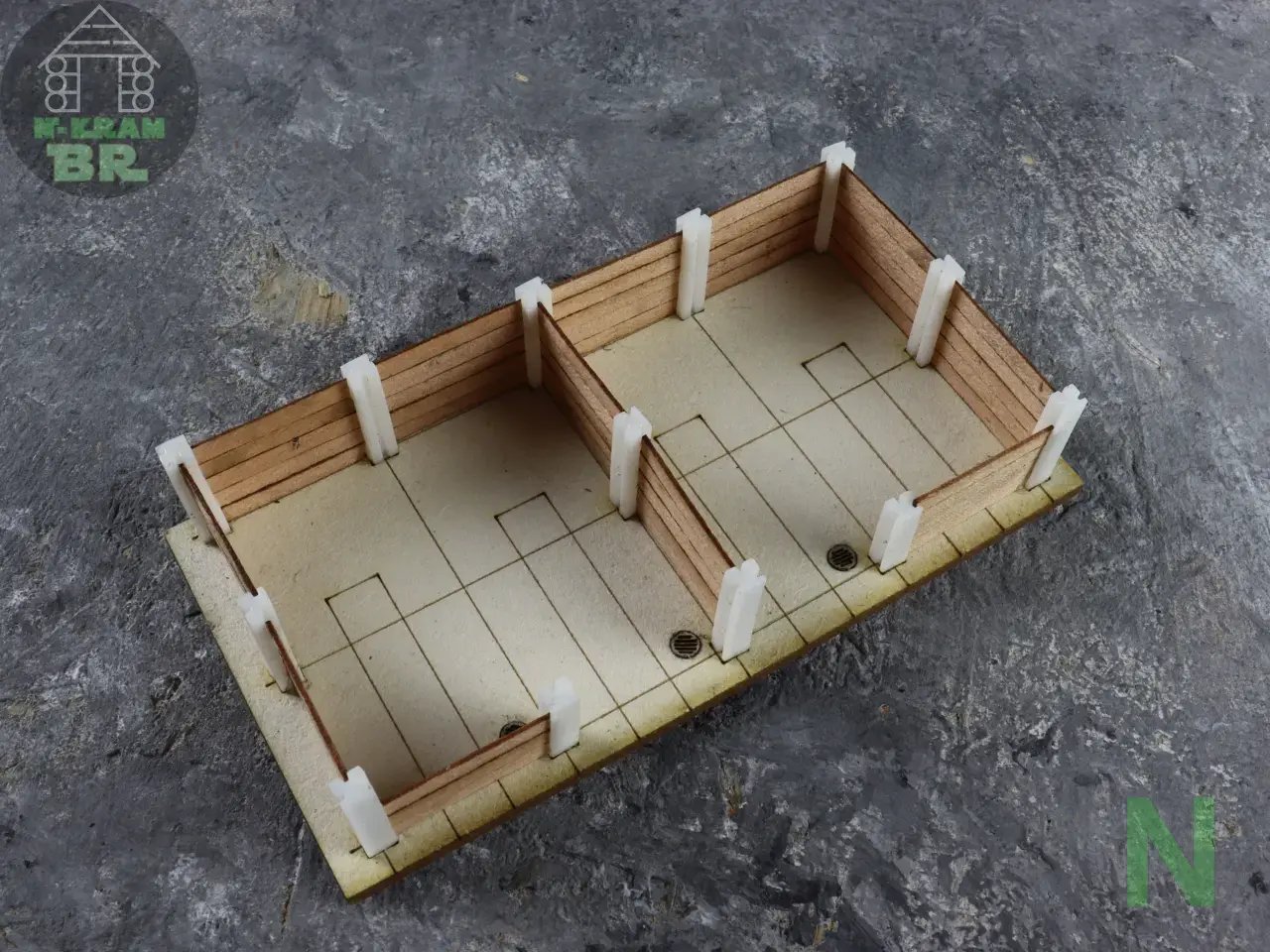 Die Modelleisenbahn lebt von Nostalgie. Darum gibt es auch relativ viele Dampflokomotiven darauf. Bei manchen sogar parallel zu modernen Hochgeschwindigkeitszügen. Und ich finde das super. Aber Dampfloks brauchen Kohle. Die wird in Kohlebansen aufbewahrt und von dort in die Tender oder Kohlebehälter geschafft. Mein Kohlebansen hat zwei Kammern und in jeder Kammer zwei Abflüsse, die mit Deckeln verschlossen sind. Die Pfosten haben Nuten, in denen die Bretter aus Echtholz geschoben werden. Das sieht ohne Alterung schon toll aus, erst recht mit etwas Farbe.