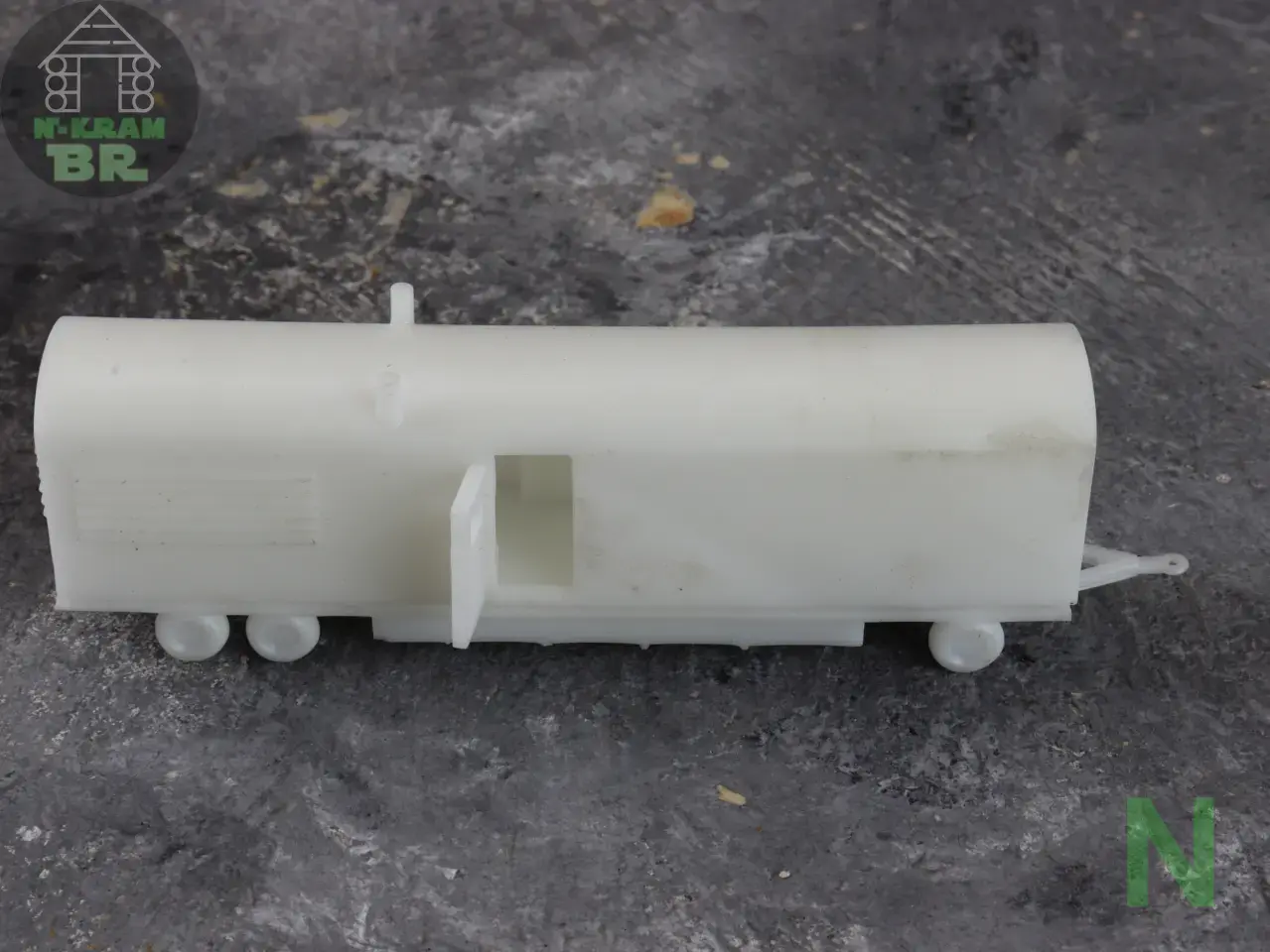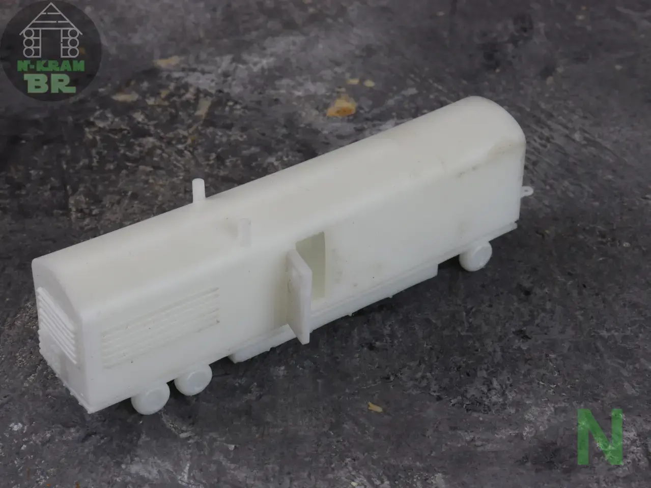 Für das 3D-Druckteil ist noch einige Nacharbeit notwendig. Auf den Unterseiten sind noch die Ansätze der Supports, die erhaben aus dem Boden ragen. Die sollte man noch vorsichtig einebnen. Mit heißem Wasser wird das Resin weich und etwaige Verformungen können korrigiert werden. Dann kann der Wagen bemalt, beleuchtet und zusammengebaut werden.